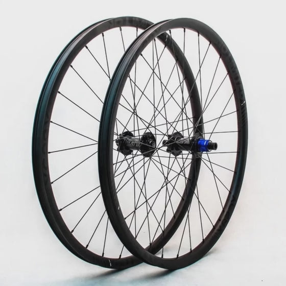 The No Limited MTB 29er wheels are full carbon wheels built on competition-grade Tune King Kong hubs, which allow for full conversion to any drivetrain (SRAM XD, Shimano) and adapt to any frame, meaning the rear wheel can be adapted to a 12x142mm or 5x135mm axle. The front wheel can be adapted to a 15x100mm or 5x100mm axle, or with the latest Boost system, a 148mm x 12mm rear and a 15x110mm front.