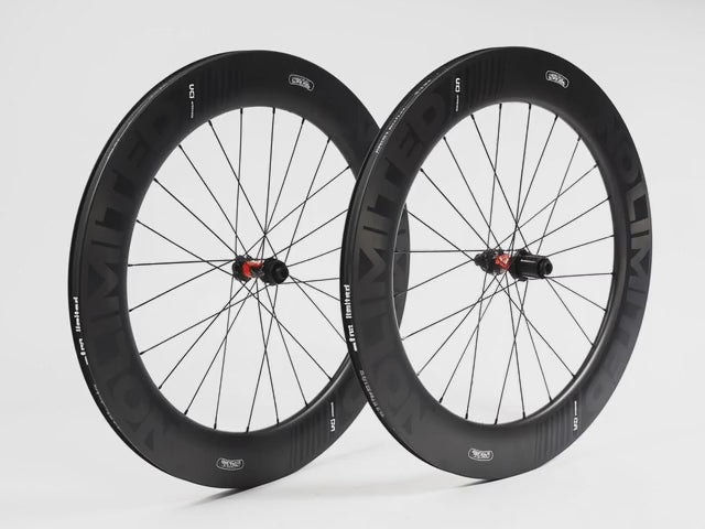The No Limited PRO RACE 80 Disc wheels are a new addition to the race disc collection, meaning they're compatible with disc brakes. These wheels are ideal for riding on flat or slightly undulating terrain. They're suitable for both time trial and aero road bikes.